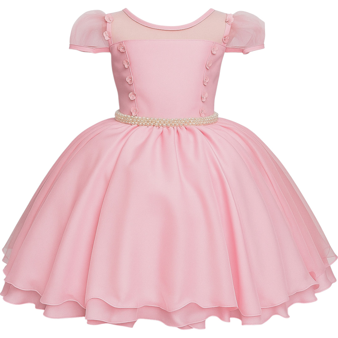 Encante-se com este lindo vestido infantil rosa, perfeito para festas, aniversários, batizados e ocasiões especiais. Confeccionado com tecidos de alta qualidade, possui saia com camadas de tule que garantem volume e movimento delicado. O corpete estruturado traz acabamento refinado e o cinto de pérolas acrescenta um toque de elegância e sofisticação.